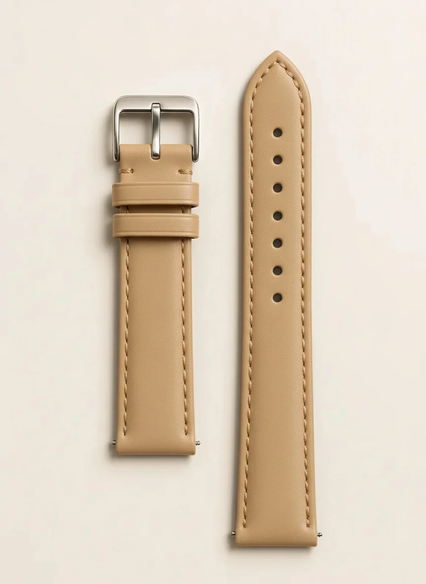 Each strap is carefully hand-finished — from precise stitching to the polished stainless steel buckle that completes the refined look.